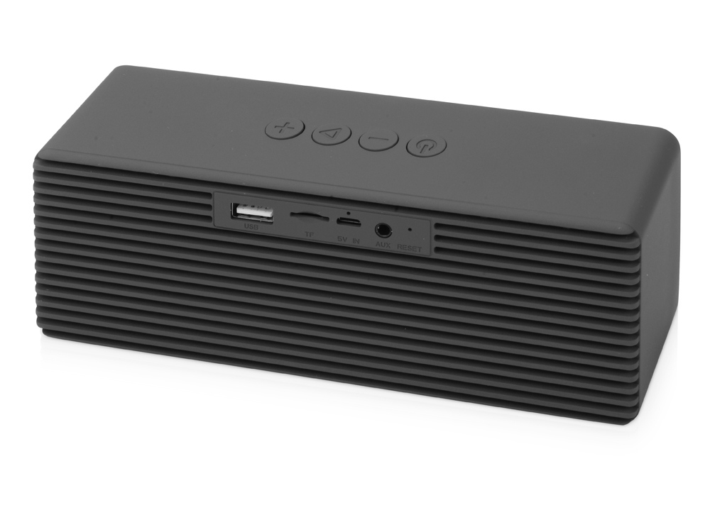 Беспроводная колонка «Bar»- это качественное звучание на протяжении более 6 часов благодаря двум стереодинамикам и современному аккумулятору на 1500 мАч. Корпус «Bar» имеет классическую форму и покрыт приятным на ощупь покрытием софт тач. Колонка имеет достаточно места для нанесения крупных изображений. Кроме стандартного режима Bluetooth — музыка может воспроизводиться с micro-SD карты или флеш-карты USB, прямое подключение AUX. Колонка поставляется в подарочной упаковке. УФ-печать (УФ-печать цветные изделия) на данный товар осуществляется бесплатно. Оплачивается только настройка оборудования в размере 1800 рублей на весь тираж.