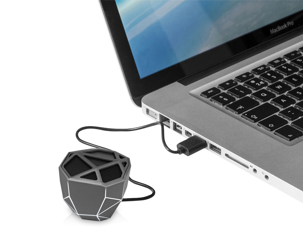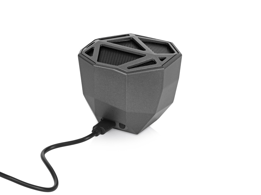 Беспроводной портативный динамик «Geo» — ультрасовременное решение для прослушивания аудио с функцией расширенных басов. Дизайн колонки выполнен в стиле low-poly, главная особенность которого — необычная геометрия форм. Визуальный эффект усиливается одноцветной подсветкой колонки, яркость которой меняется в зависимости от интенсивности звука.
