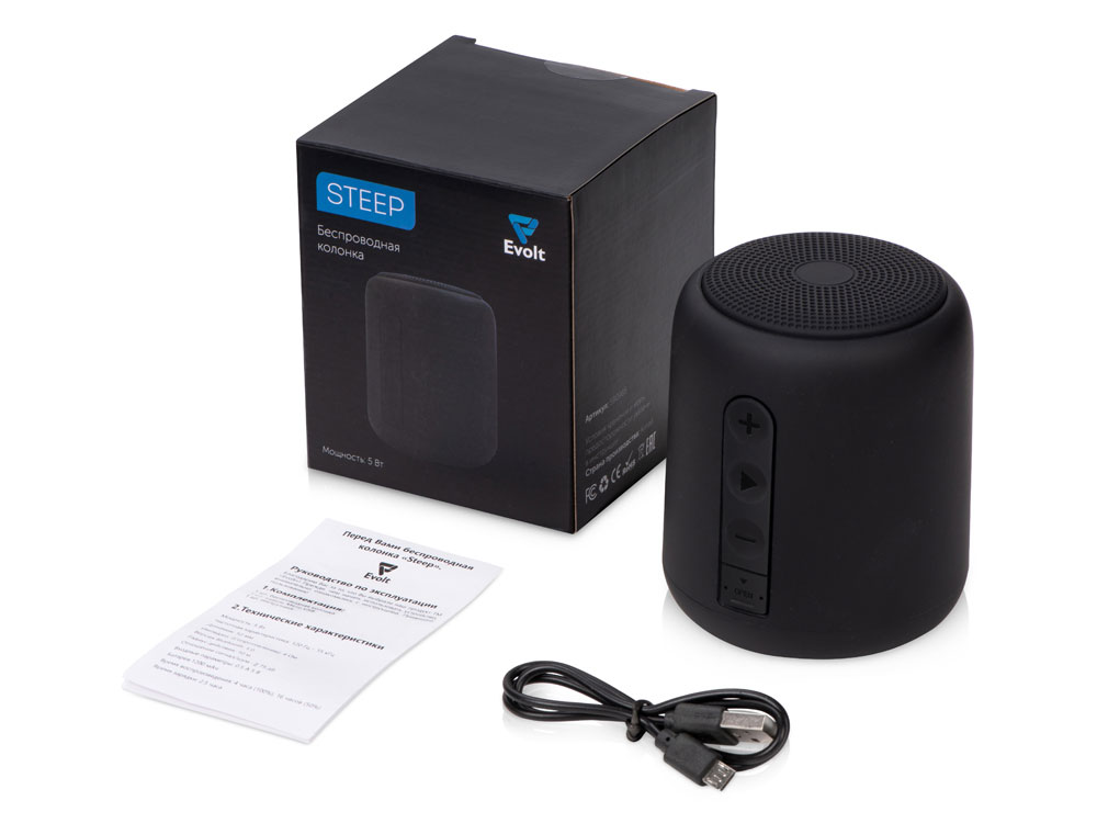 Steep от Evolt — портативная колонка с хорошими басами, качественным звучанием и внутренним аккумулятором, обеспечивающим длительное время работы без проводов и подзарядки. Опция TWS позволит объединить колонки в пару и наслаждаться звуком, окружающим вас с двух сторон.