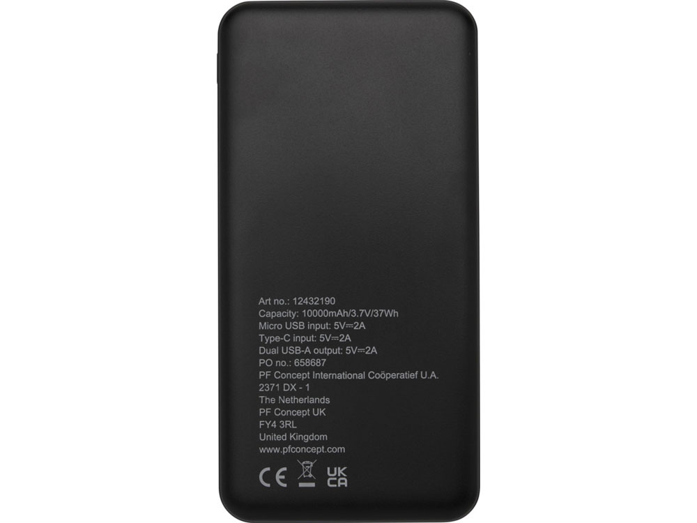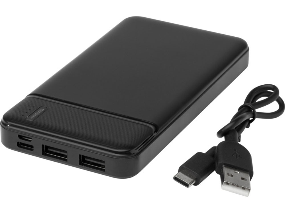 Портативное зарядное устройство изготовлено из переработанного пластика ABS. Портативное зарядное устройство работает от литий-полимерного аккумулятора класса А емкостью 10 000 мАч с длительным сроком службы для быстрой зарядки. Индикаторы питания показывают уровень оставшейся энергии, поэтому вы всегда будете знать, когда устройство необходимо зарядить. Вход Тип-C 5 В/2 А, вход Micro USB 5 В/2 A, двойной выход USB-A 5 В/2 А, общая мощность 10 Вт. Поставляется с зарядным кабелем USB-A — Type-C 2 А из термополиэтилена длиной 30 см, инструкцией по эксплуатации и подарочной коробкой из крафт-бумаги.