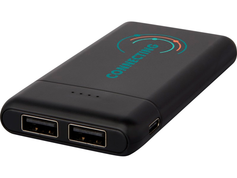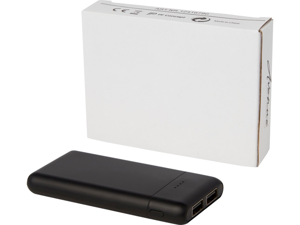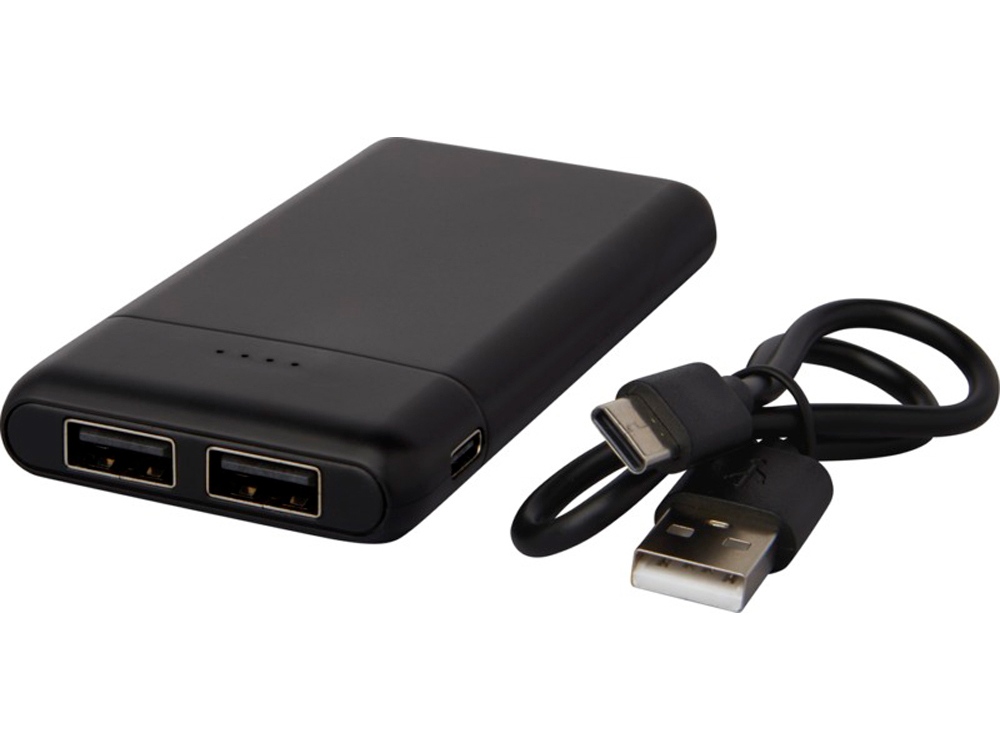 Карманное портативное зарядное устройство с аккумулятором высокой плотности емкостью 5000 мАч. Вход Тип-C (5 V/2 А) и двойной выход USB-A (5 V/2 А). В комплект входит кабель для зарядки из TPE-пластика без ПВХ. Поставляется в коробке Avenue. Пластик ABS.