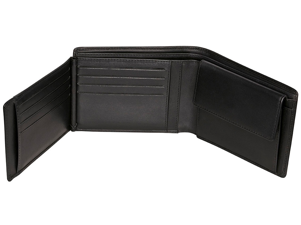 Функциональная организация: 12 слотов для карт, отделение для монет, 2 отделения для банкнот, 4 скрытых кармана