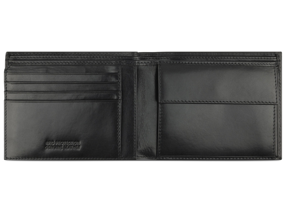 Функциональная организация: 2 отделения для банкнот, 8 слотов для карт, 4 кармана, отделение для монет, сетчатый карман, защита данных RFID.