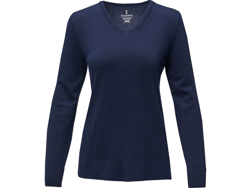 Женский пуловер Stanton. V-образный вырез. Воротник из гладкого трикотажа. С манжетами из гладкого трикотажа в рубчик. С подшивкой из гладкого трикотажа в рубчик. Удлиненный задний подол с боковыми прорезями. Атласная лента на воротнике Основная этикетка нанесена на ткань методом термоприклеивания без неудобных пришитых ярлыков. Придающие форму швы и зауженная талия для ровного прилегания.