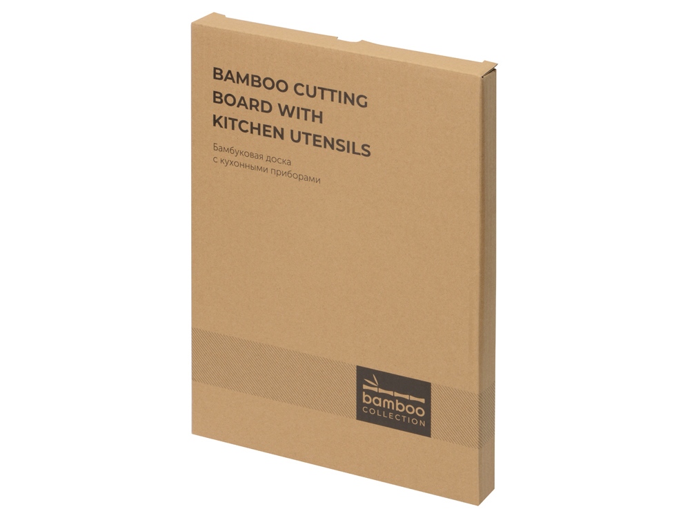 Бамбуковая доска с кухонными принадлежностями — отличный подарок для любителя готовки и кулинарии.
