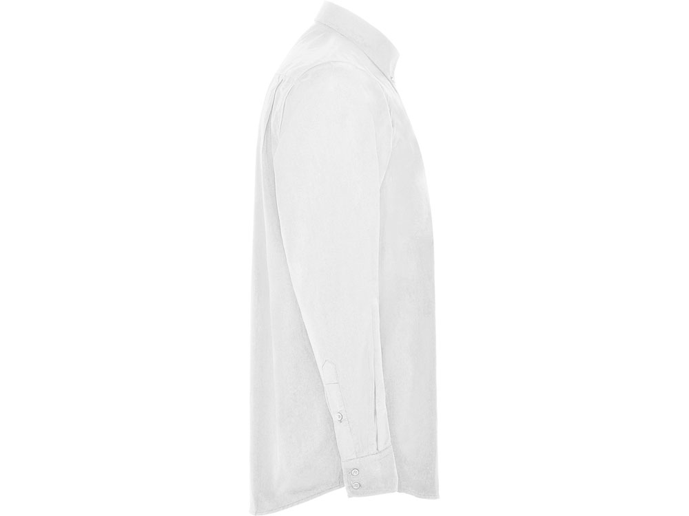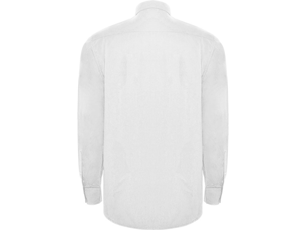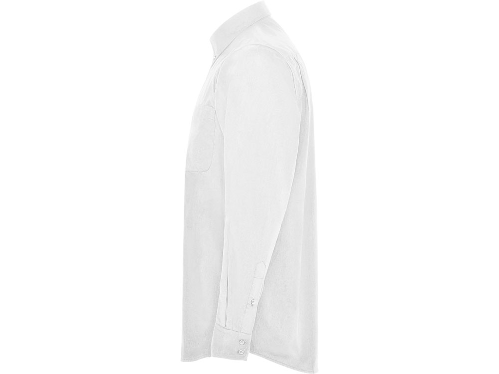 Рубашка мужская с длинным рукавом на семи пуговицах. Накладной карман на груди слева, закругленный низ изделия. Уголки воротника продублированы пуговицами.