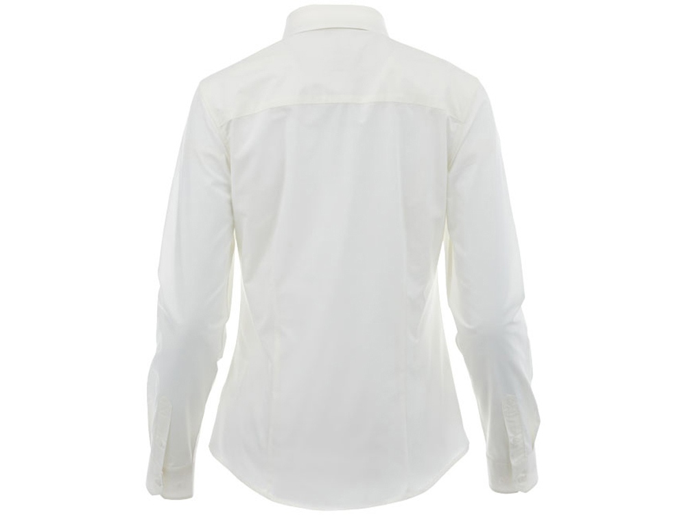 Женская рубашка с длинными рукавами Hamell. Стрейтч-ткань. Регулируемый манжет на одной пуговице. Атласная окантовка внутренней части горловины. Швы моделирующие фигуру и приталенный крой. Гравированные пуговицы в цвет изделия. Комфортный ярлык-трансфер на изделии. Поплин из 96% хлопка и 4% эластана. 118 г/м². Трафаретная печать (1 цвет (белые изделия)) на данный товар осуществляется бесплатно. Оплачивается только настройка оборудования в размере 5300 рублей на весь тираж.