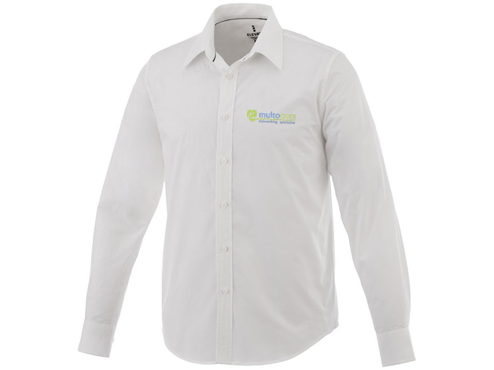 Рубашка с длинными рукавами Hamell. Скрытая пуговица под воротником. Стрейч-ткань. Регулируемый манжет на одной пуговице. Атласная окантовка внутренней части горловины. Гравированные пуговицы в цвет изделия. Комфортный ярлык-трансфер на изделии. Поплин из 96% хлопка и 4% эластана. 118 г/м². Трафаретная печать (1 цвет (белые изделия)) на данный товар осуществляется бесплатно. Оплачивается только настройка оборудования в размере 5300 рублей на весь тираж.