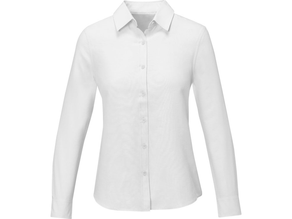 Pollux женская рубашка с длинными рукавами. Отрывной-отрезной лейбл. Регулируемая манжета рукава с одной складкой. Пуговицы в тон. Встречная складка на спинке. Ткань Оксфорд 55% хлопка, 45% полиэстера, 130гр.