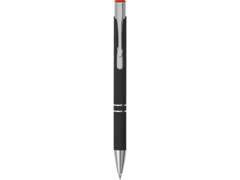 Черная шариковая ручка с кнопочным механизмом и тактильно приятным покрытием софт-тач. Цветная гравировка соответствует цвету кнопки и делает ее еще более изысканным подарком. Гравировка (оптоволоконный лазер) (Без чернения) на данный товар осуществляется бесплатно. Оплачивается только настройка оборудования в размере 1000 рублей на весь тираж.