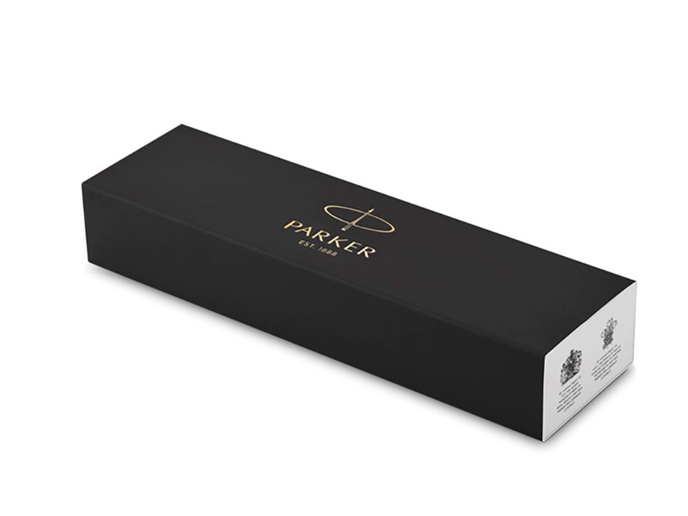 Лакированный корпус из отшлифованного металла с круговой полировкой превосходно сочетается с позолоченными декоративными элементами. Ручка упакована в подарочную коробку Parker.