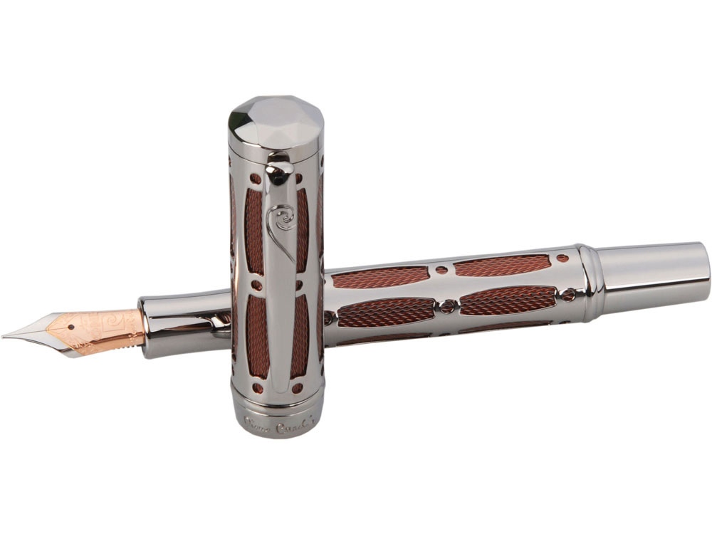 Ручка перьевая The One с колпачком на резьбе и изысканной гравировкой по всему корпусу ручки, кольце и колпачке. Перо — BOCK, нержавеющая сталь с позолотой 18К, произведенное в Германии, содержит гравировку с наименованием выпуска The One и логотип бренда Pierre Cardin, наконечник Iridium point, который обеспечивает легкость и гладкость письма в зависимости от силы нажатия на перо. Пишущий узел среднего размера M. Комплектуется двумя синими чернильными картриджами или конвертором. Серия перьевых ручек Pierre Cardin The One — это специальный выпуск, посвященный архитектуре замков долины Луары во Франции. Солидный, крупный корпус ручки украшен фигурной оправой с тонкой гравировкой в стиле гильош и напоминает зарешеченные окна готических замков. Эксклюзивный подарочный ларец на петлях и продленная до двух лет гарантия подчеркивает премиальный статус этой коллекции. Перьевая ручка серии The One станет прекрасным подарком для тех, кто ценит сочетание высокого качества и стиля haute couture