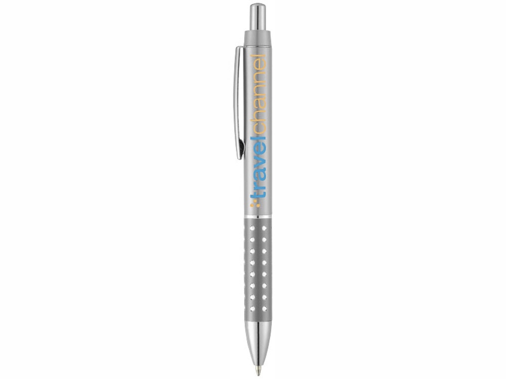 Шариковая ручка с блестящим алюминиевым держателем. Тампопечать (1 цвет (цветные изделия)) на данный товар осуществляется бесплатно. Оплачивается только настройка оборудования в размере 4000 рублей на весь тираж.