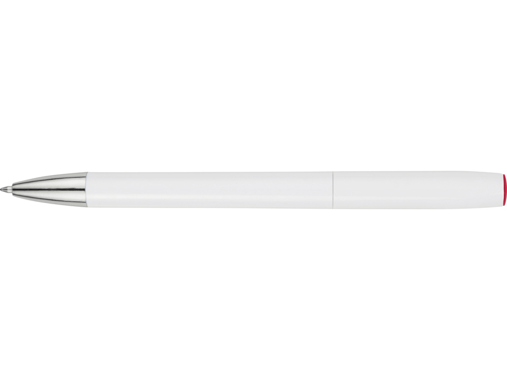 Белая ручка с серебристым носиком и цветным акцентом станет неотъемлемым элементом вашей рекламной кампании. На широкий клип можно нанести логотип, а на пластиковый корпус – слоган. Ручка снабжена надежным поворотным механизмом и доступна в 6 расцветках. Трафаретная печать круговая ручки (1 цвет (белые изделия)) на данный товар осуществляется бесплатно. Оплачивается только настройка оборудования в размере 4000 рублей на весь тираж.