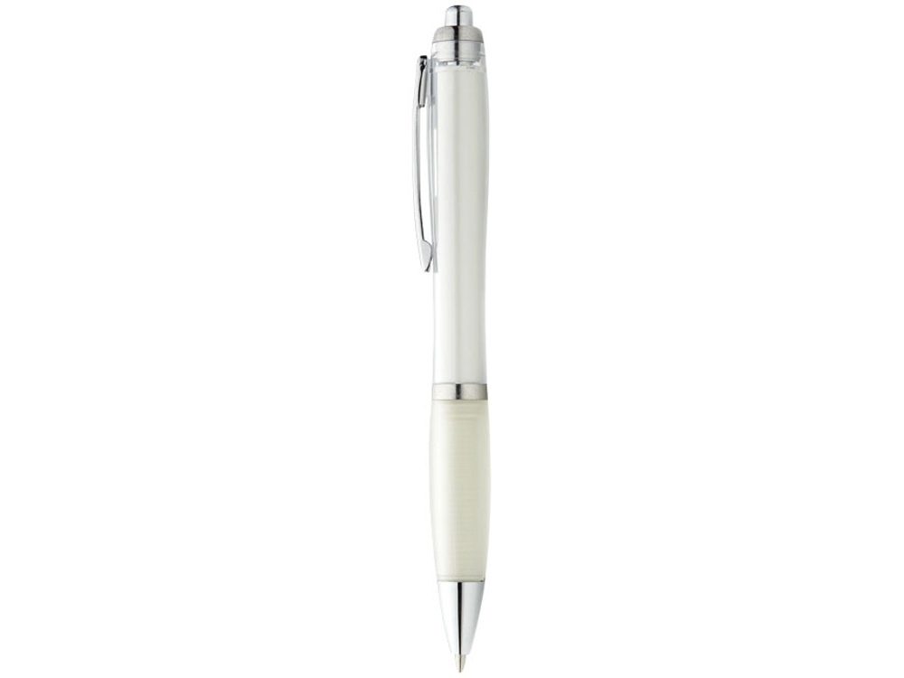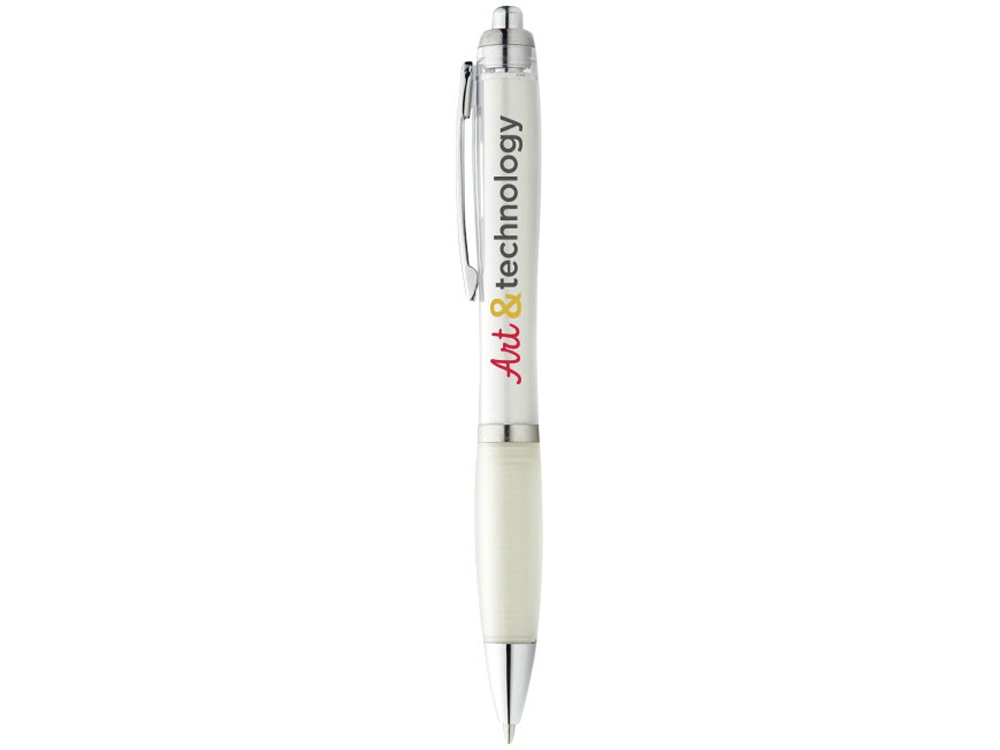 Ручка Nash. Шариковая ручка с прорезиненным грипом. Нажимной механизм. Черные чернила. Тампопечать (1 цвет (белые изделия)) на данный товар осуществляется бесплатно. Оплачивается только настройка оборудования в размере 4000 рублей на весь тираж.