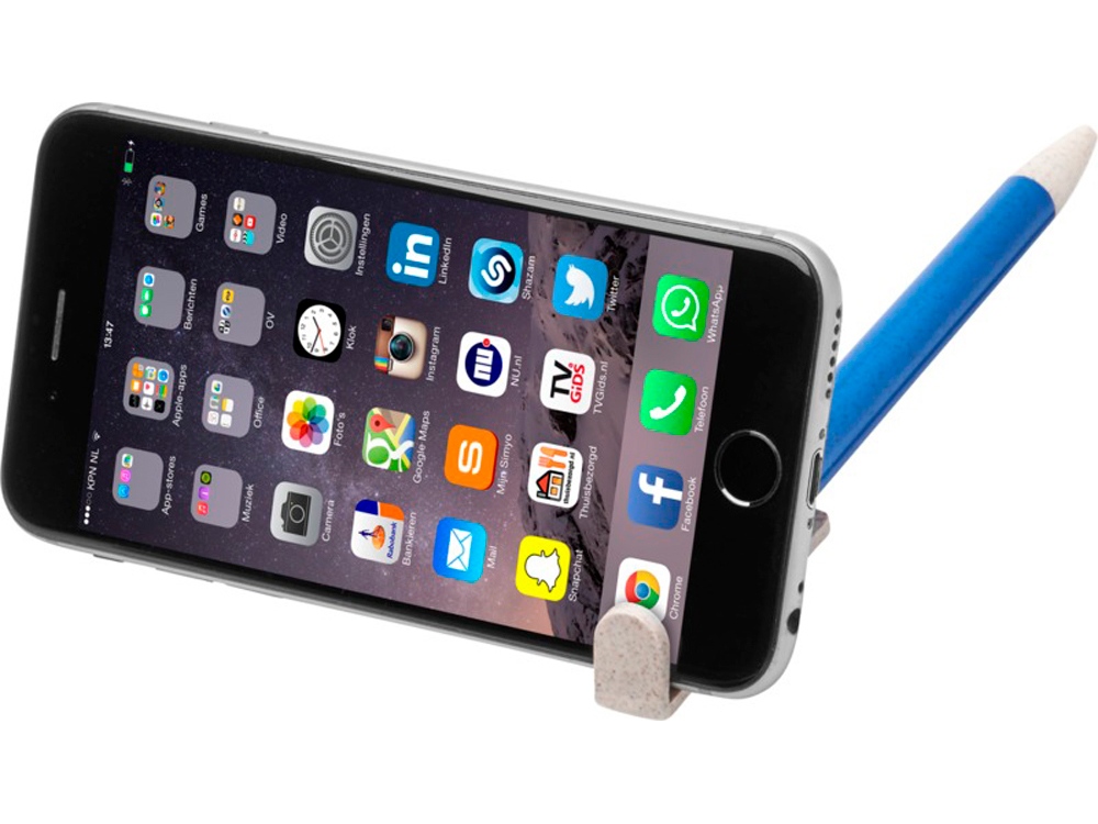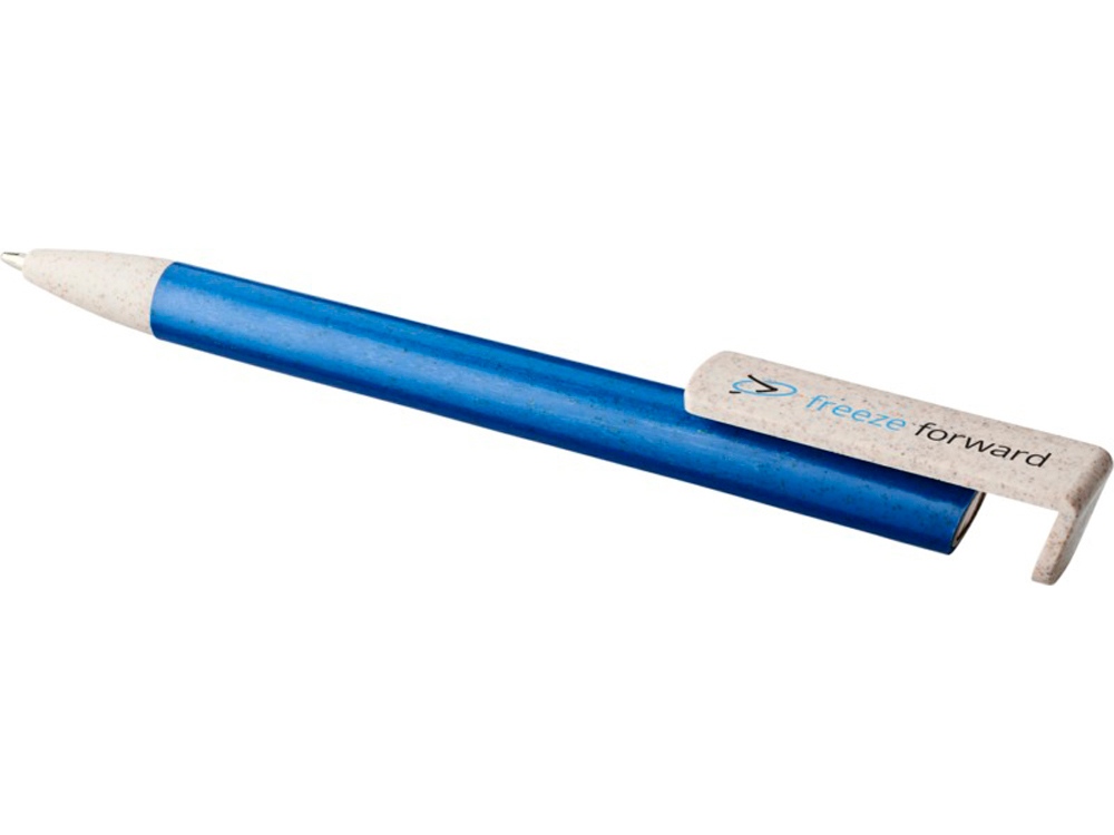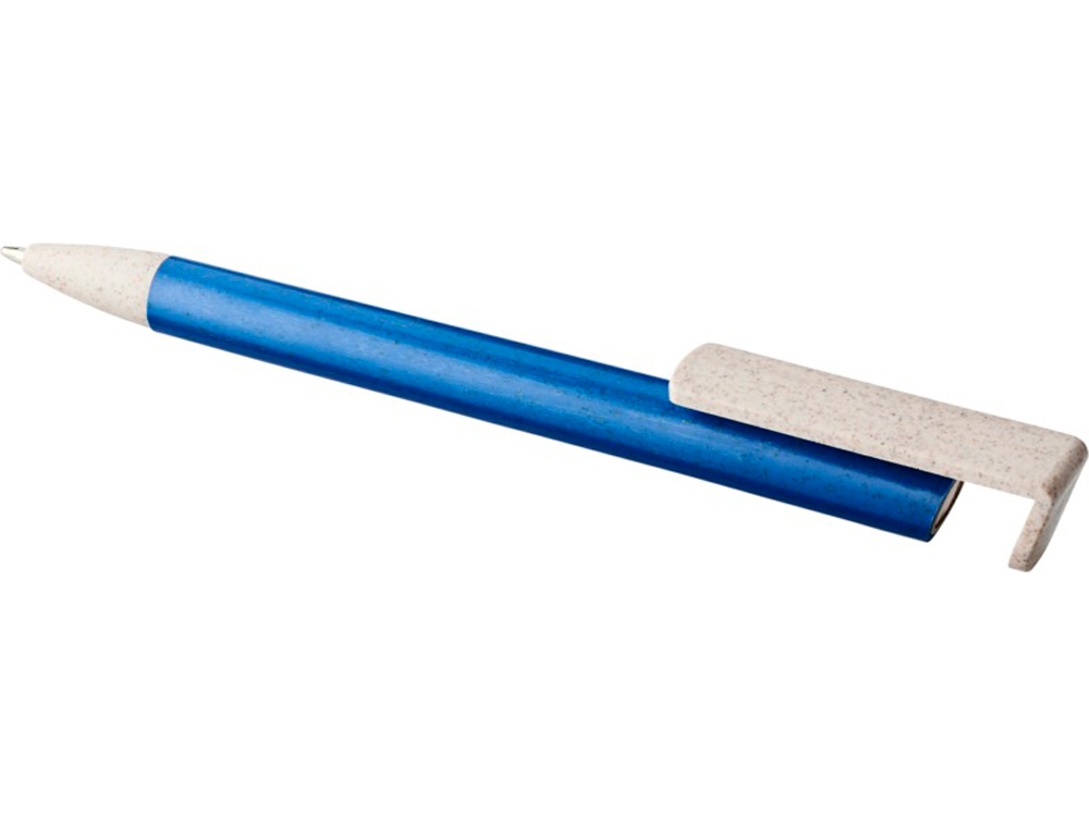 Шариковая ручка и держатель для телефона Medan из пшеничной соломы. Шариковая ручка из пшеничной соломы с кнопочным механизмом. Солома — это стебли зерновых, использование которых позволяет сократить количество пластика в изделии. Верхняя часть ручки выполняет функцию держателя для смартфона, обеспечивая удобный просмотр в режиме громкой связи. Пшеничная солома, АБС пластик. Тампопечать (1 цвет (цветные изделия)) на данный товар осуществляется бесплатно. Оплачивается только настройка оборудования в размере 4000 рублей на весь тираж.