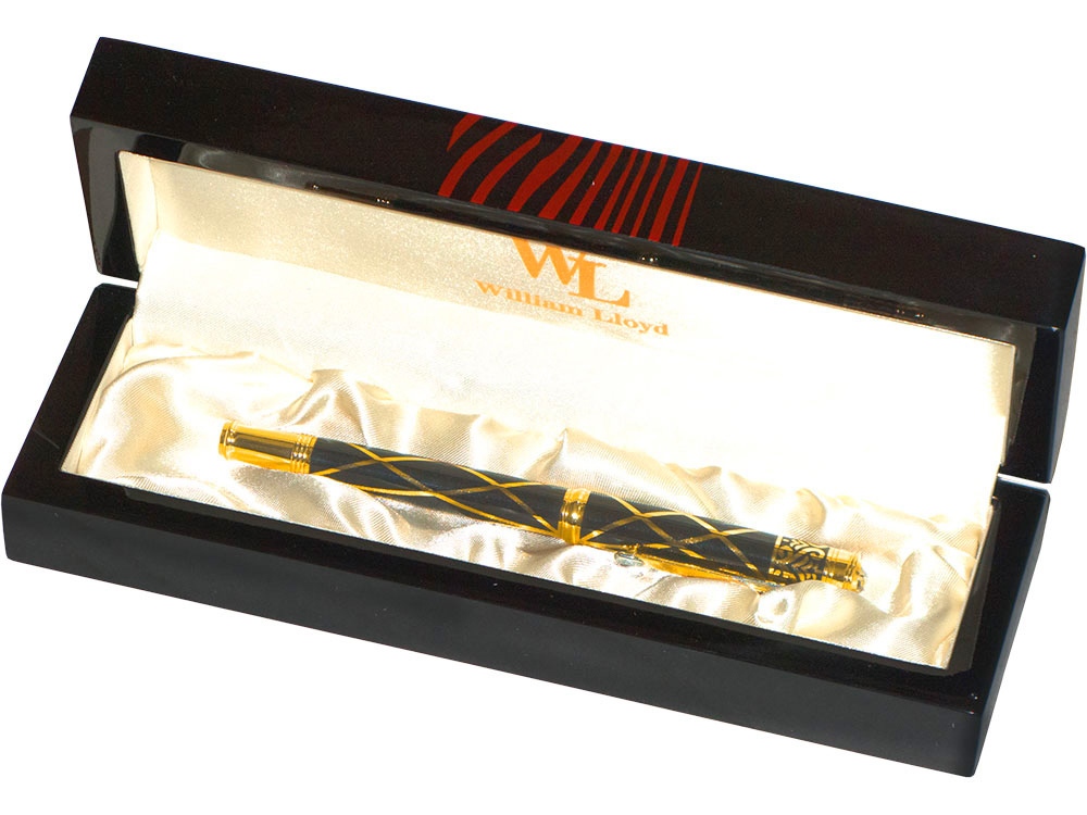 Эффектный дизайн ручки роллера William Lloyd отлично подчеркнет оригинальный стиль владельца. Съемный колпачок, стильный дизайн корпуса. Корпус металлический, красивое переплетение золотистых линий на черном фоне. Упакована в подарочный футляр. Гравировка (оптоволоконный лазер) (Без чернения) на данный товар осуществляется бесплатно. Оплачивается только настройка оборудования в размере 1000 рублей на весь тираж.