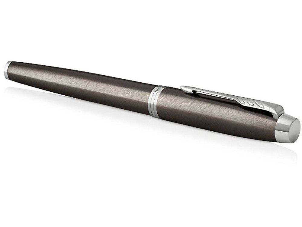 Ручка-роллер IM Core со съемным колпачком. Корпус и колпачок из латуни, покрыт лаком коричневого (шоколадного) цвета, превосходно сочетается с хромированными декоративными элементами. Зона захвата выполнена из глянцевого черного пластика. Выгравированный логотип PARKER на декоративном хромированном кольце.
