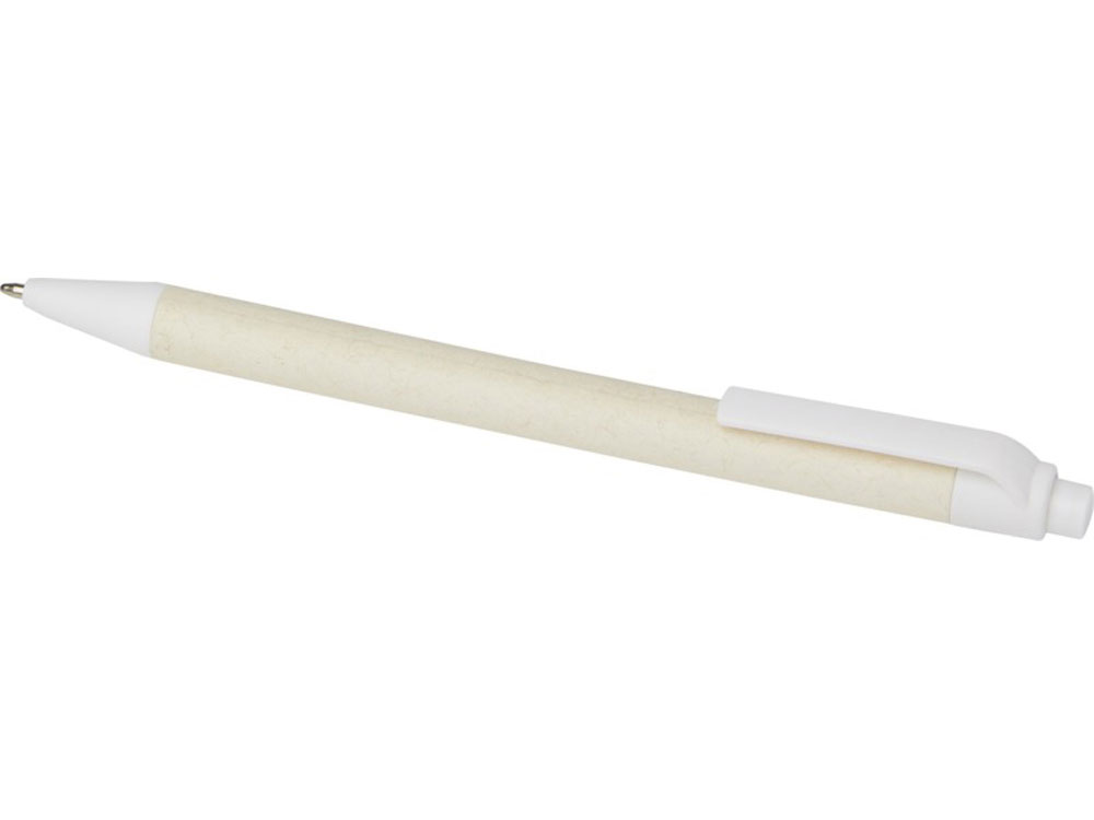 Шариковая ручка с кнопочным механизмом и корпусом из переработанных коробок из-под молока (до 70%). Кнопка, зажим и наконечник изготовлены из PLA-пластика. Картонные коробки из-под молока собираются, сортируются, перерабатываются и превращаются в бумагу, таким образом действительно превращая мусор во что-то полезное.