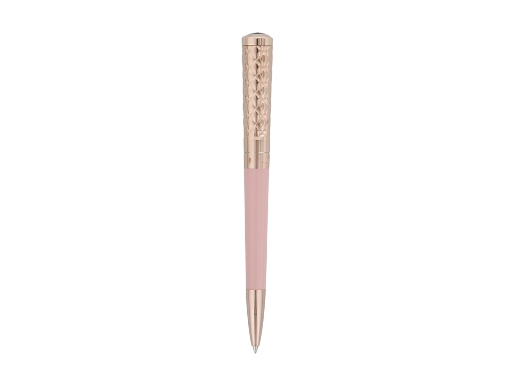 Шариковая ручка Liberte с отделкой розовой пастелью, лаком и розовой позолотой имеет интересный колпачок с ромбовидным гильоше, который приводит в движение стержень. У пишущего инструмента эргономичный хват, позволяющий пальцам принять правильное положение при письме.