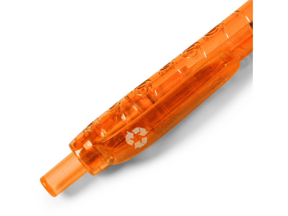 Полупрозрачная дизайнерская ручка из материала RPET. Кнопочный механизм. Синие чернила