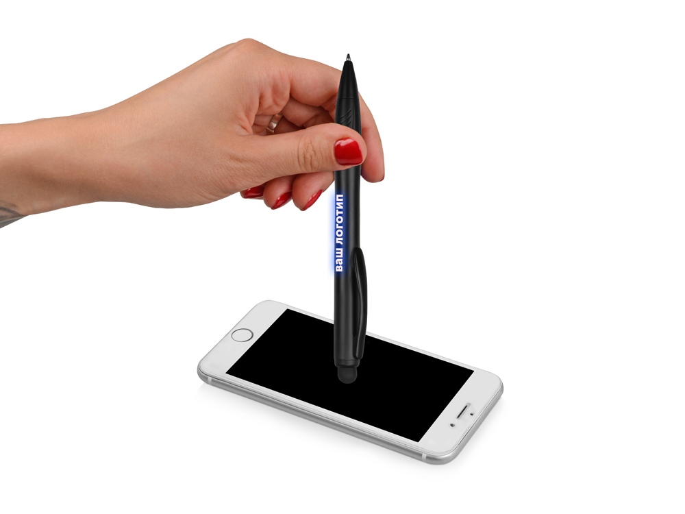 Ручка-стилус «Light» — это настоящий тренд в мире письменных принадлежностей. При использовании гравировки на ручке открывается крутая светодиодная подсветка: в зависимости от артикула красная, синяя или белая. Еще у «Light» есть удобный стилус для гаджетов. Шариковая ручка выигрышно подчеркнет символику бренда на мероприятии и станет отличным бизнес-подарком. Гравировка (CO2 лазер) (Без чернения) на данный товар осуществляется бесплатно. Оплачивается только настройка оборудования в размере 1000 рублей на весь тираж.
