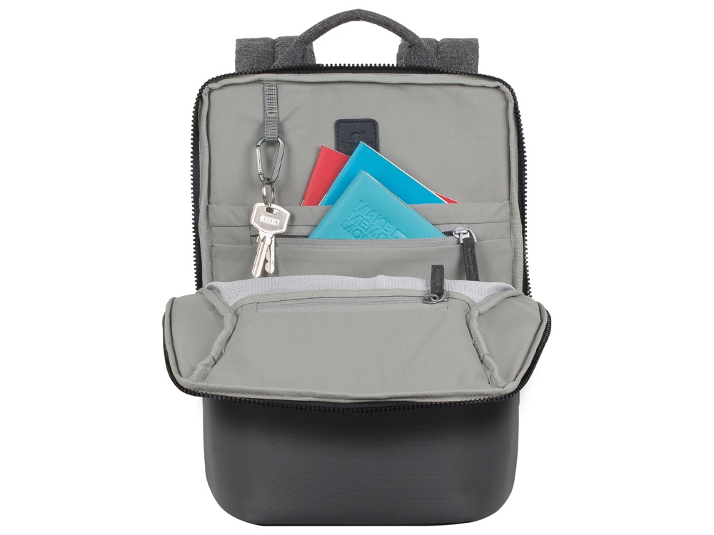 • Передний карман на молнии для хранения аксессуаров, зарядного устройства, авторучек, смартфона.