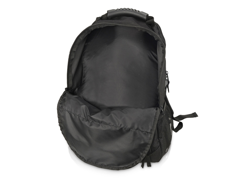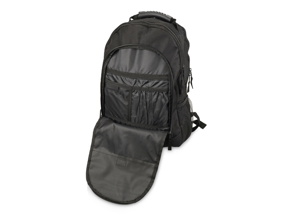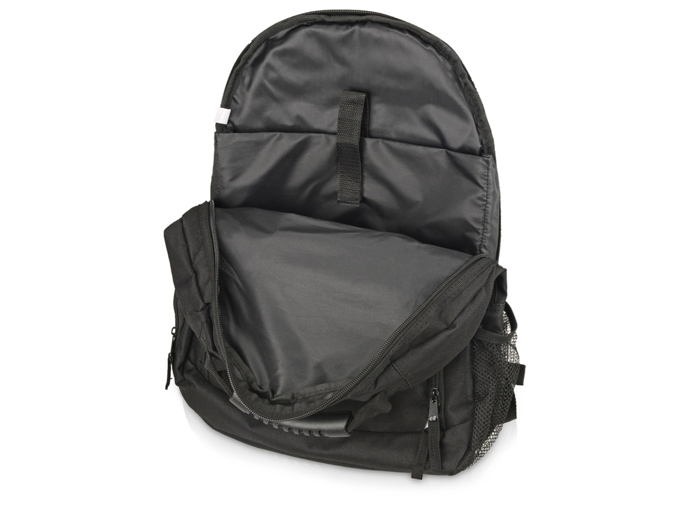 Рюкзак для ноутбука «Journey». Большое основное двойное отделение на молнии включает отделение с мягкой подкладкой для ноутбука с диагональю 15,4″ с ремнем на липучке. Усиленная прочная резиновая ручка сверху. 600D Полиэстер. Термотрансфер (1 цвет (цветные изделия)) на данный товар осуществляется бесплатно. Оплачивается только настройка оборудования в размере 9200 рублей на весь тираж.