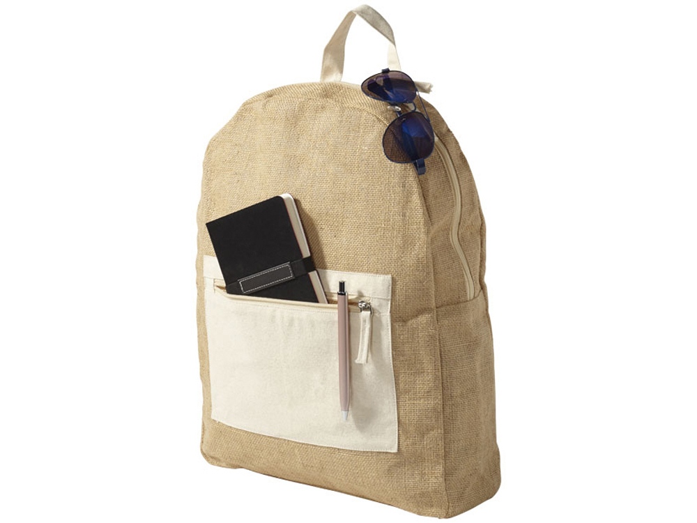 Рюкзак из Джута. Основное отделение на молнии, хлопковый передний карман на молнии. Регулируемые хлопковые лямки на плечи. Джут и хлопок. Термотрансфер (1 цвет (цветные изделия)) на данный товар осуществляется бесплатно. Оплачивается только настройка оборудования в размере 9200 рублей на весь тираж.