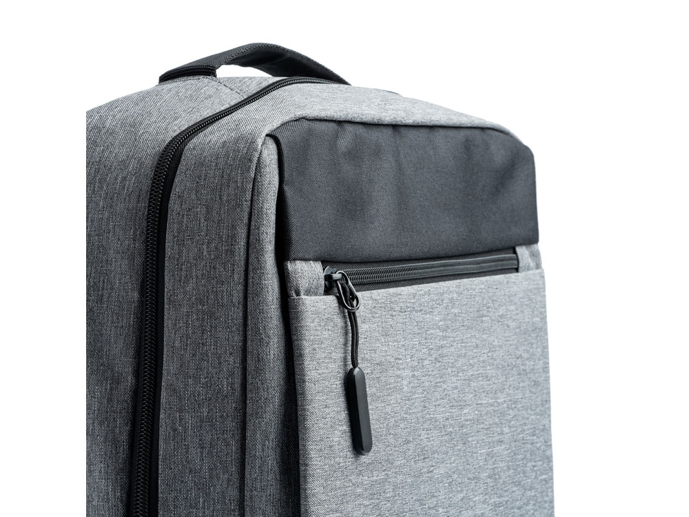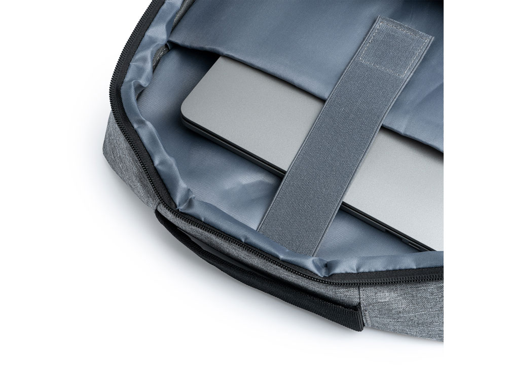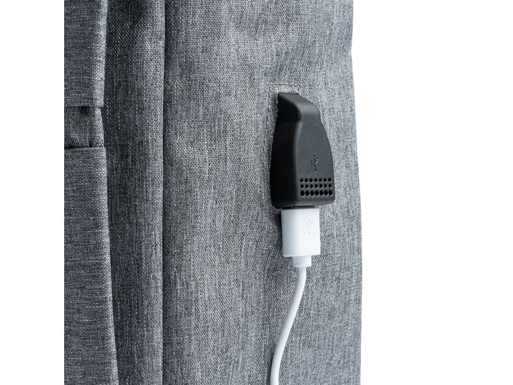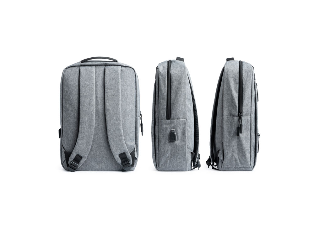 Рюкзак из полиэстера 300D. Отделка OXFORD с инновационным дизайном. Мягкое основное отделение идеально подходит для ноутбука и два передних кармана с элегантными ручками. Включает USB-разъем для подключения внешнего аккумулятора (не входит в комплект). Ремни и мягкая спинка.