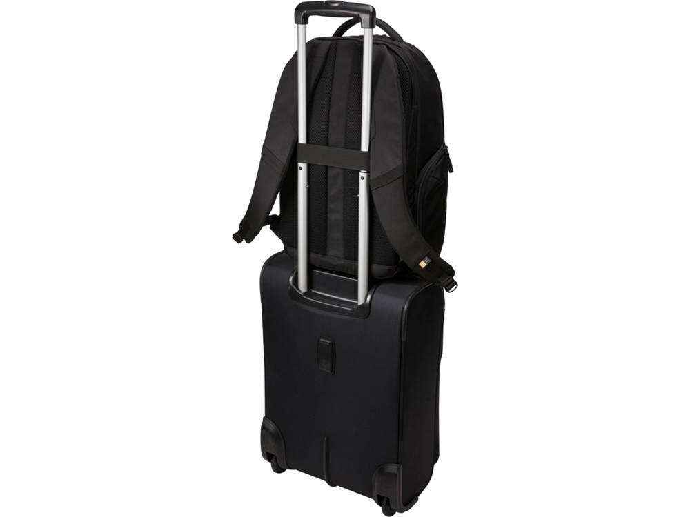 Имеет большое основное отделение на молнии с мягким чехлом для ноутбука 15,6″ и планшета 10,1″ и сетчатый карман на молнии для кабелей и аксессуаров. Поставляется с передней панелью-органайзером для хранения небольших электронных приборов, кабелей, аксессуаров, визитных карточек и ключей. Имеет расширяемые боковые карманы под бутылку с водой или блок питания, мягкие наплечные ремни, стеганую заднюю панель из сетки, мягкую ручку и рукав для фиксации на выдвижной ручке дорожной сумки. Гарантия от Case Logic: 25 лет.