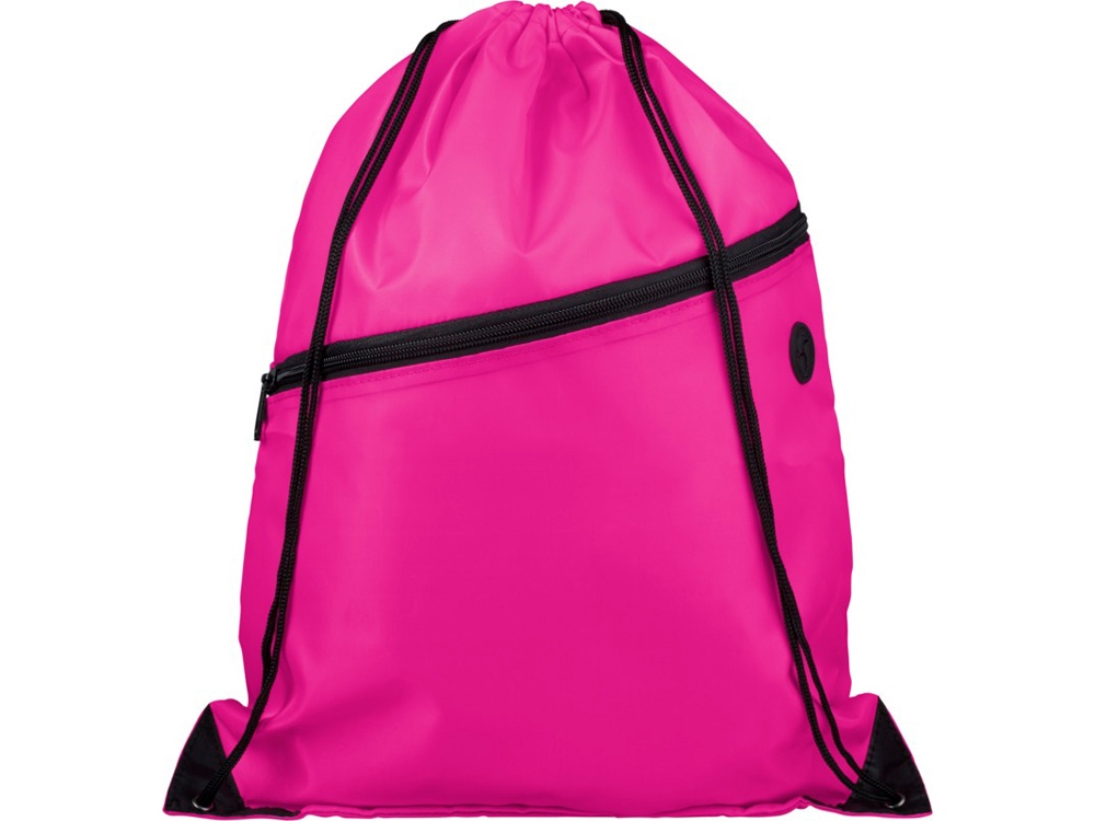 Рюкзак Oriole на молнии со шнурком. Большое основное отделение затягивается на шнурок черного цвета. Имеет карман на молнии спереди, отделение для наушников и укрепленные угловые выступы. Прочность до 5 кг. Полиэстер 210D. Трафаретная печать (1 цвет (цветные изделия)) на данный товар осуществляется бесплатно. Оплачивается только настройка оборудования в размере 8700 рублей на весь тираж.