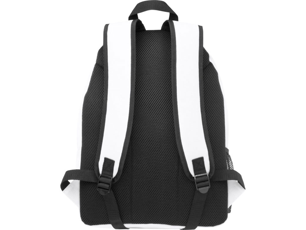 Прочный рюкзак, изготовленный на 100% из переработанного пластика, предназначенного для повторного использования, что способствует уменьшению количества пластиковых отходов. Имеет регулируемые плечевые ремни, 2 отделения на молнии и передний карман на молнии. Для изготовления этой сумки перерабатывается около 15 бутылок. Термотрансфер (1 цвет (белые изделия)) на данный товар осуществляется бесплатно. Оплачивается только настройка оборудования в размере 5800 рублей на весь тираж.