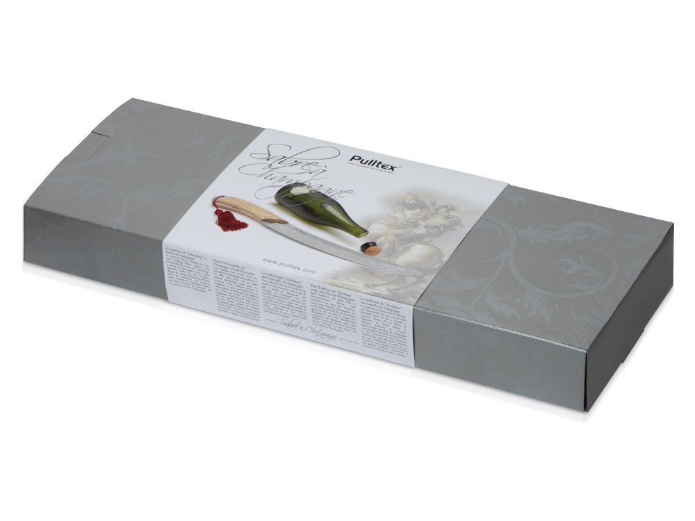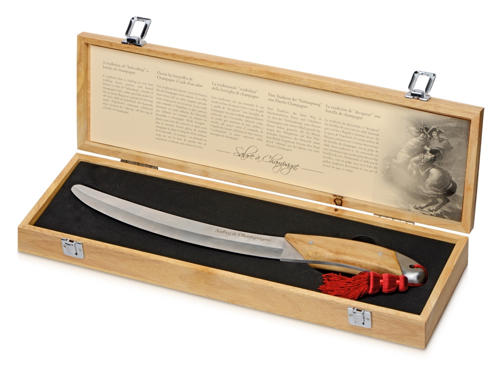 Сабраж — это необычный и очень зрелищный способ открывания шампанского, при котором горлышко бутылки не откупоривается, а сбивается вместе с пробкой. Сабля для сабража от Pulltex, испанского производителя аксессуаров для вина, создана специально для этой цели с учетом всех особенностей процесса: удобная ручка, плоское лезвие, изогнутое специально под горлышко. Рукоять выполнена из дерева, благодаря чему обеспечивается удобный хват, а кисть бордового цвета и нарядный деревянный футляр дополняют саблю, придавая ее облику торжественность. Гравировка (оптоволоконный лазер) (Без чернения) на данный товар осуществляется бесплатно. Оплачивается только настройка оборудования в размере 1000 рублей на весь тираж.