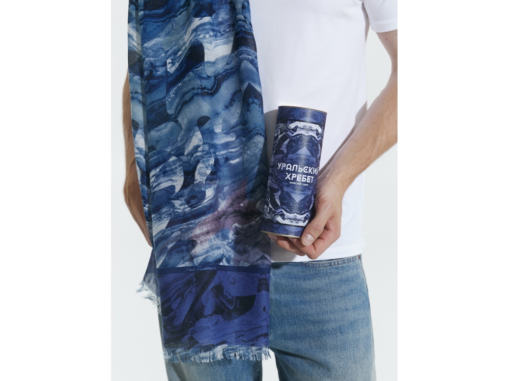 Дизайн мужского платка «Уральский хребет» — о силе и величии Уральских гор, а также о мужском мироощущении, которое привлекает женщин.