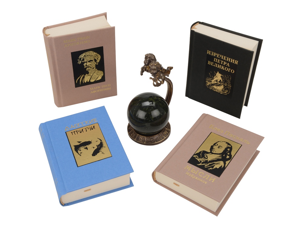 Подарочный набор в виде шкафчика с книжками карманного формата и интерьерной статуэткой, изображающей любознательных Близнецов. Шкафчик представляет собой элегантную миниатюру реального предмета мебели. Его внутренний декор продолжает зодиакальную тематику. Изящная статуэтка послужит отличным украшением интерьера. Книжки из набора имеют удобный для чтения формат и презентабельное оформление переплета с элементами золотого тиснения. Неиссякаемым источником мудрости на каждый день послужат такие произведения из набора: