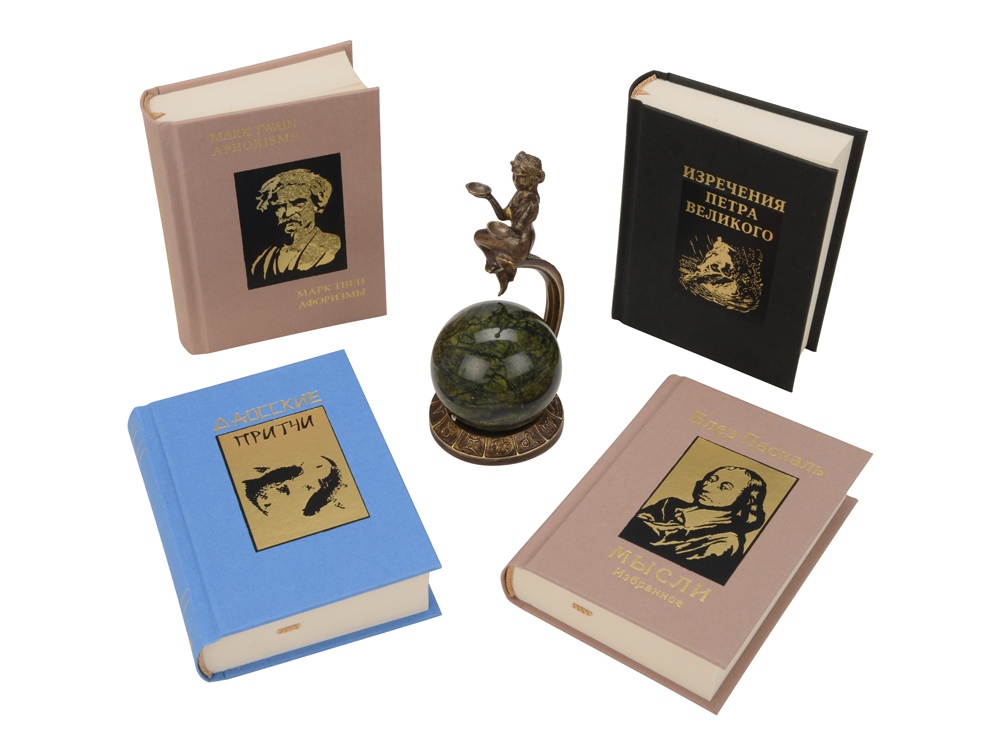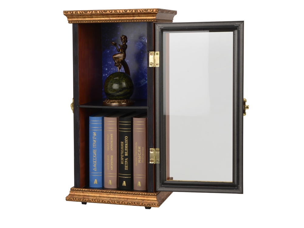 Подарочный набор в виде шкафчика с книжками карманного формата и интерьерной статуэткой, изображающей миролюбивых Весов. Шкафчик представляет собой элегантную миниатюру реального предмета мебели. Его внутренний декор продолжает зодиакальную тематику. Изящная статуэтка послужит отличным украшением интерьера. Книжки из набора имеют удобный для чтения формат и презентабельное оформление переплета с элементами золотого тиснения. Неиссякаемым источником мудрости на каждый день послужат такие произведения из набора: