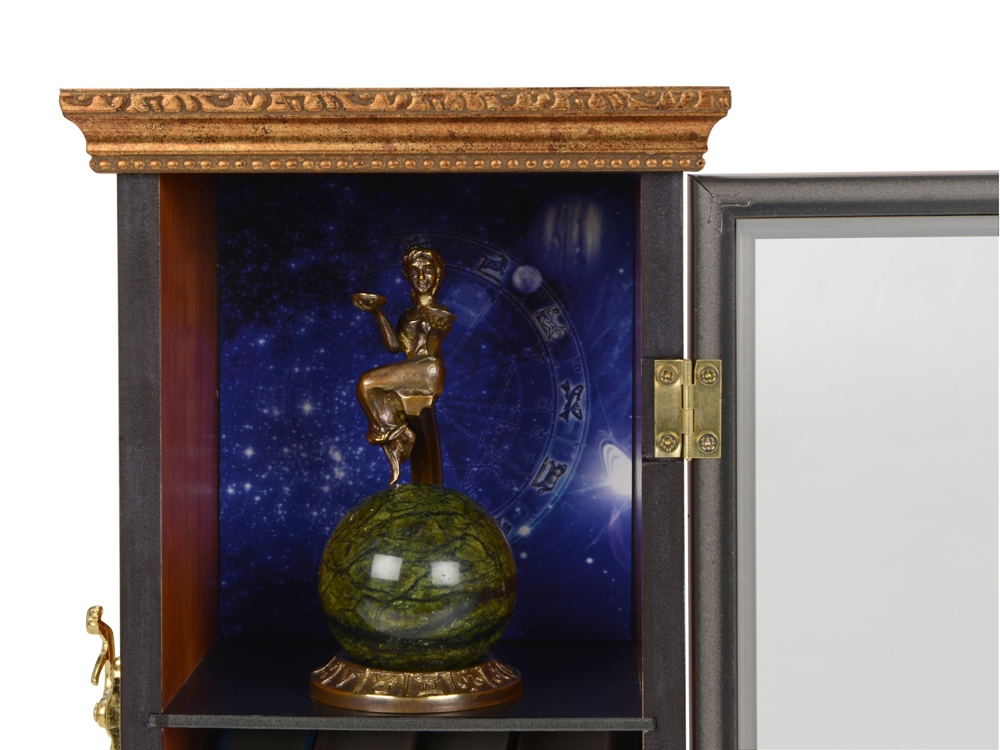 | Материал товара | шкаф- пластик/стекло/багетный профиль, знак зодиака- бронза патинированная, змеевик |