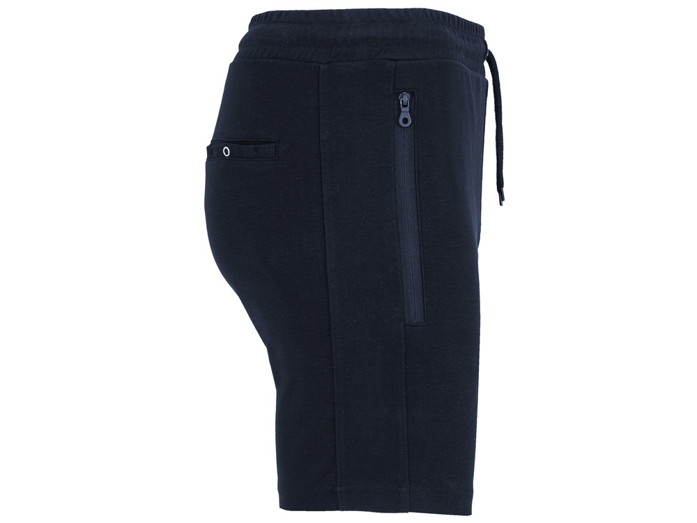 Шорты с эластичным поясом со шнурком и металлическими люверсами. Два боковых карманы на молнии с бегунком в тон. Лампасы по бокам в тон. Декоративный гульфик. Карман сзади с застежкой на кнопку.