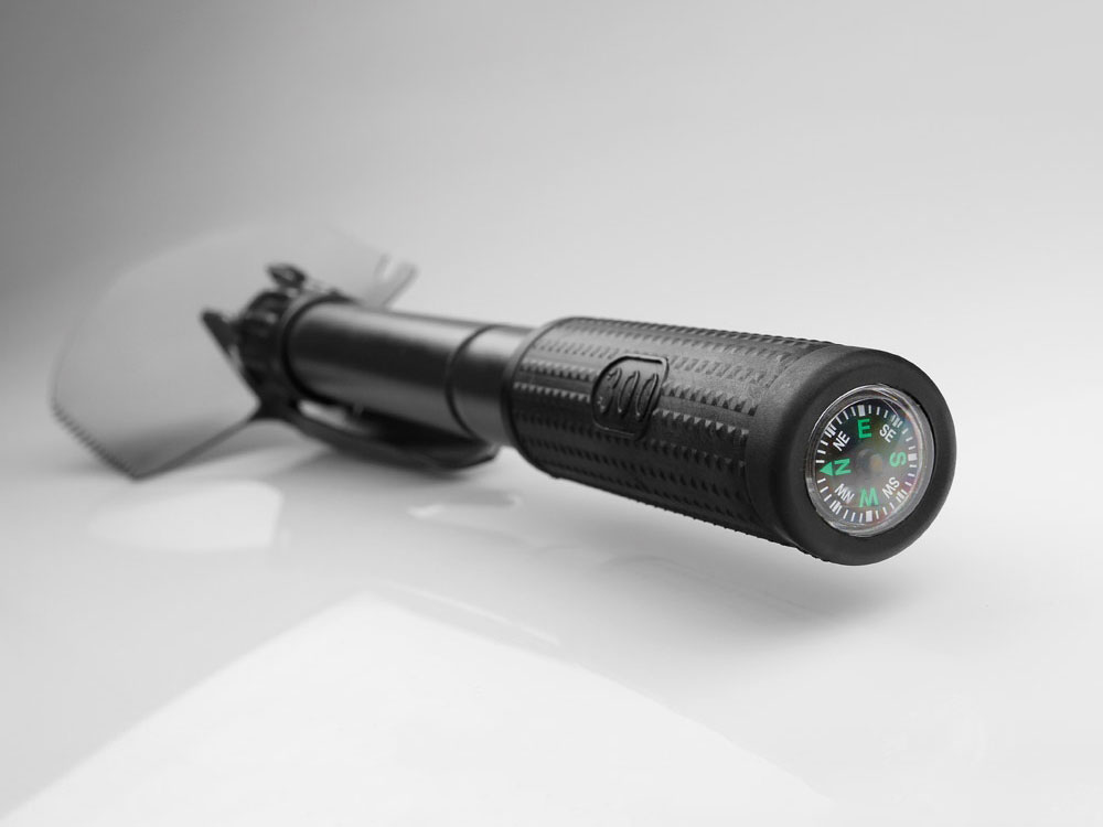 Металлическая складная лопата с компасом и резиновой рукояткой, практичная и компактная. Поставляется в сумке 600D.В сложенном виде: 160 x 100 мм | В развернутом виде: 420 x 100 мм. Гравировка (оптоволоконный лазер) (Без чернения) на данный товар осуществляется бесплатно. Оплачивается только настройка оборудования в размере 1000 рублей на весь тираж.