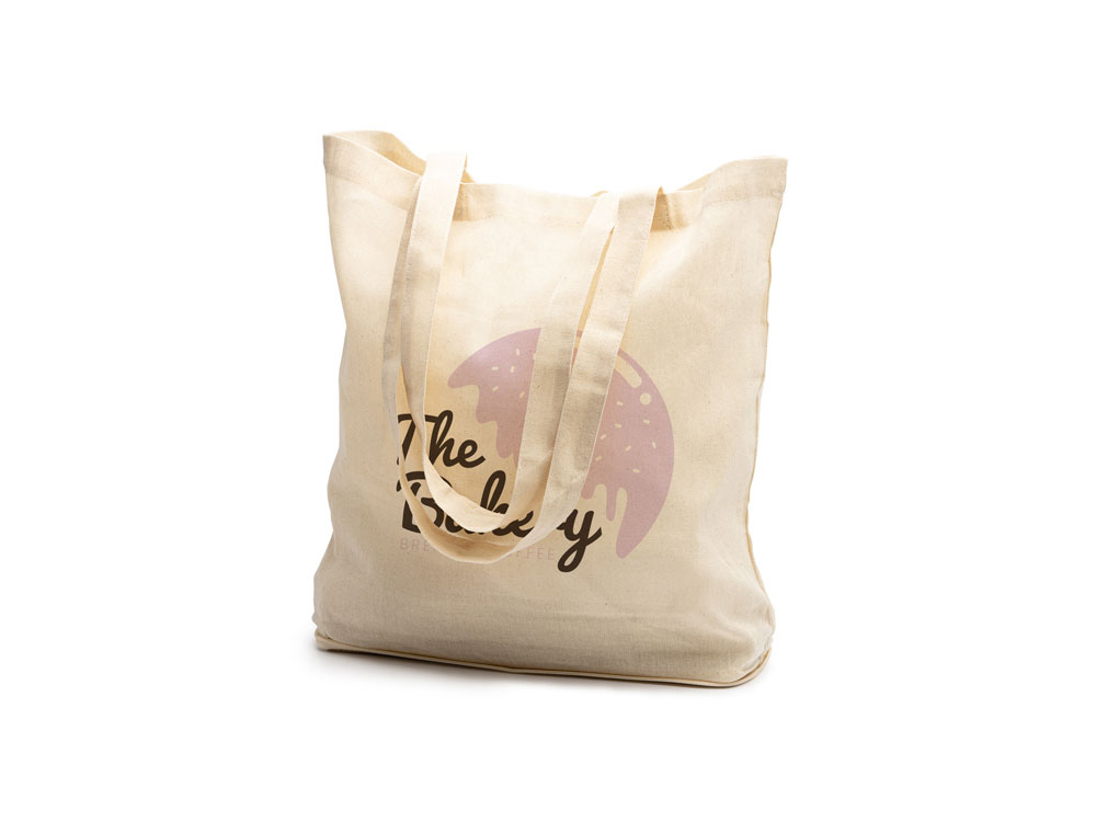 Складная сумка из 100% хлопка (110 г/м²) с дном из джута. Усиленные ручки 60 см.