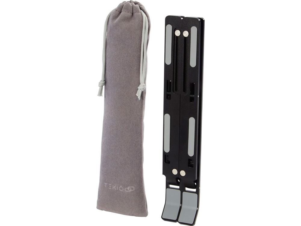 Универсальная, компактная, складывающаяся подставка для ноутбука из алюминиевого сплава. Угол обзора регулируется в 7 различных позициях для достижения оптимального эргономичного положения. Подставка очень легко складывается и раскладывается — всего за несколько секунд. В нижней части предусмотрены резиновые полоски, предотвращающие перемещение. Поставляется с сумкой для удобной переноски. Поставляется в коробке из крафт-бумаги премиум-класса и красочной наклейкой. Алюминий.