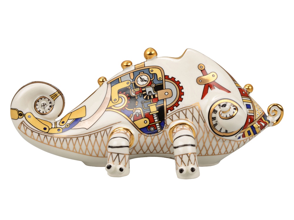 До символического значения хамелеона несложно догадаться. Хамелеон символизирует способность подстраиваться под любые жизненные обстоятельства и везде чувствовать себя “своим”. Скульптура “Хамелеон” — это великолепный символический подарок с уникальной ручной росписью, выполненный в стиле стимпанк. Представьте себе мир, где паровые машины и другие ретро-технологии не исчезли, а достигли высочайшего развития. Так и выглядит стимпанк!