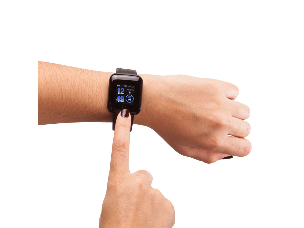 Смарт-часы. Корпус из TPU и 1,3-дюймовый цветной TFT-дисплей со встроенной USB-зарядкой. Регулируемый силиконовый ремешок и металлическая пряжка. Контроль сердечного ритма. Bluetooth-соединение с APP для iOS и Android.