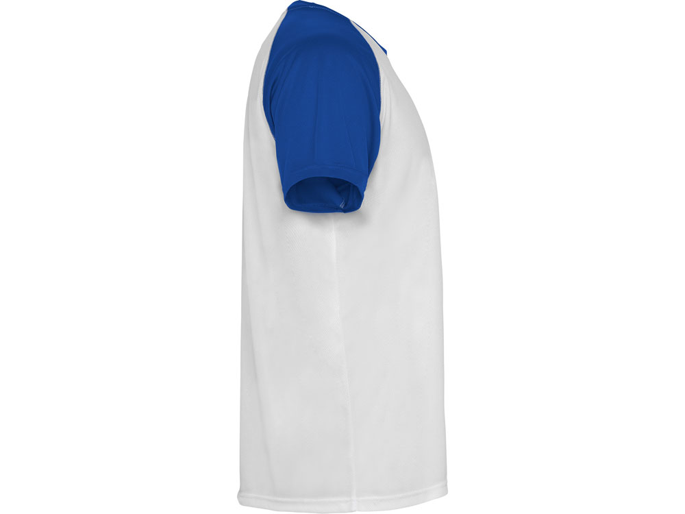 Спортивная футболка с контрастным рукавом реглан. Круглый вырез горловины с контрастной тесьмой. Технологическое дышащее полотно.
