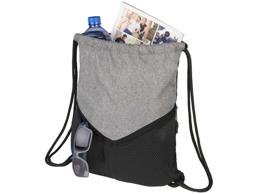 Спортивный рюкзак с застежкой на шнурке, большим основным отделением и двумя сетчатыми карманами на молнии. Сделано с прочной полиуретановой подложкой. Термотрансфер (1 цвет (цветные изделия)) на данный товар осуществляется бесплатно. Оплачивается только настройка оборудования в размере 9200 рублей на весь тираж.