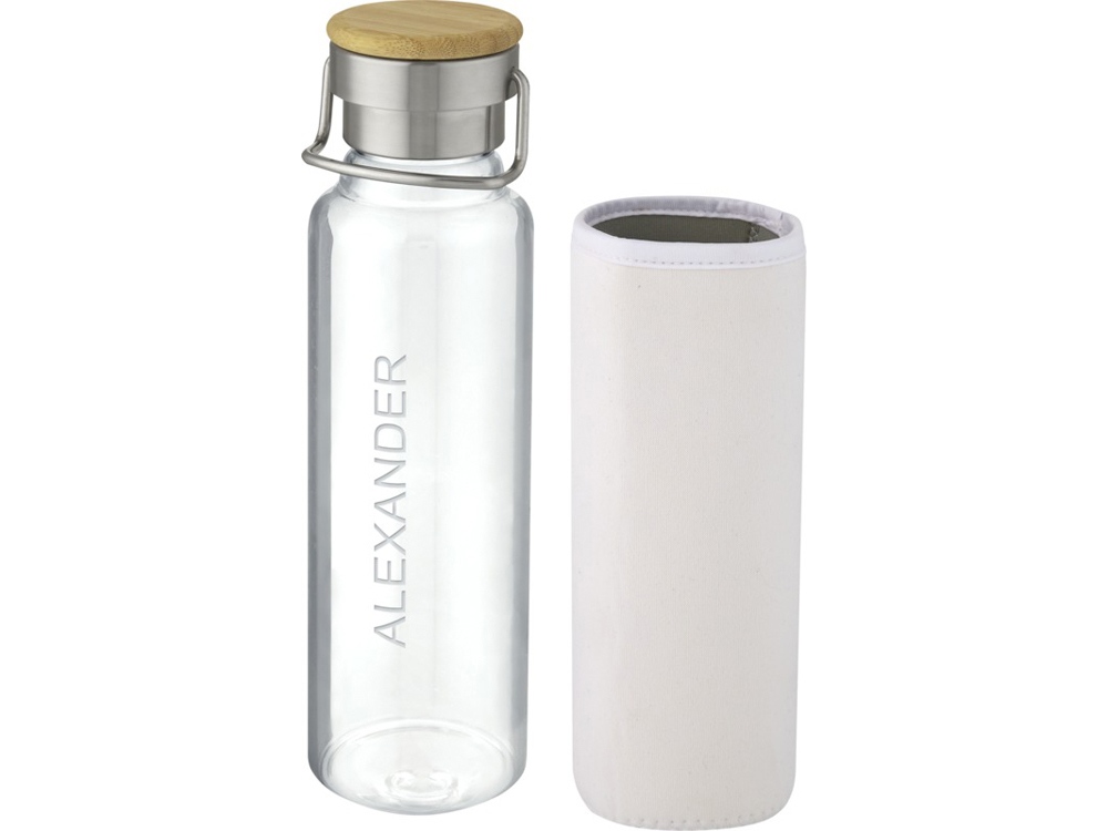 Одностенная бутылка из боросиликатного стекла с неопреновым защитным чехлом. Имеет съемную крышку с бамбуковым колпачком и ручку для удобной переноски. Бутылка изготовлена из 100% прочного боросиликатного стекла, которое не содержит вредных химических веществ и сохраняет свежесть напитка. Не содержит БФА, испытана и одобрена в соответствии с немецким законодательством о безопасности пищевых продуктов (LFGB). Проверена на содержание фталатов и одобрена для использования в соответствии с правилами REACH. Бамбук используется из устойчивых, экологически и социально ответственных источников. Объем 660 мл. Сняв неопреновый чехол и крышку, бутылку можно мыть в посудомоечной машине. В подарочной коробке из переработанного картона.