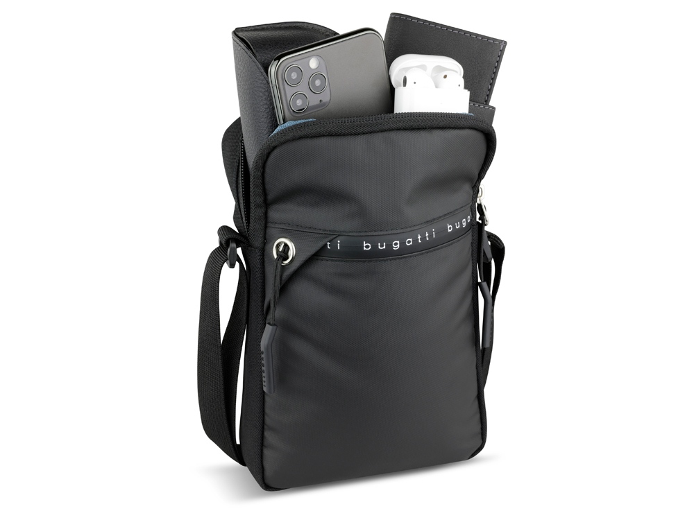 Функциональная организация: основное отделение на молнии с открытым карманом и 2 держателями для ручек, передний карман на молнии, регулируемый плечевой ремень (до 160 см).