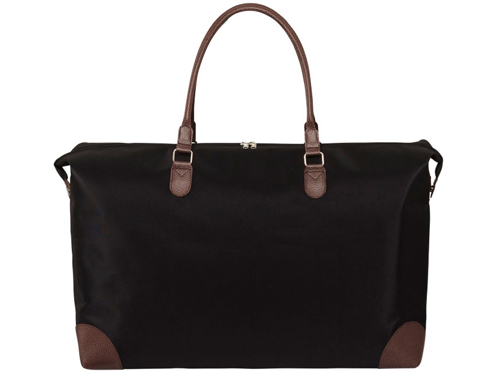 Сумка Adalie. Дорожная сумка с большим основным отделением на молнии и кнопками с обоих сторон. Темно-коричневые ручки из ПВХ придают сумке классический вид. Уплотненное дно сохранит вашу одежду и другие вещи. Внизу пять серебристых наконечников для устойчивости. Микрофибра и ПВХ. Термотрансфер (1 цвет (цветные изделия)) на данный товар осуществляется бесплатно. Оплачивается только настройка оборудования в размере 9200 рублей на весь тираж.