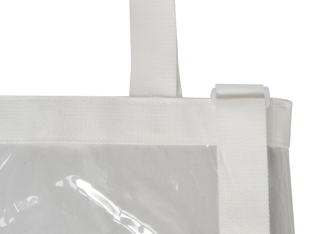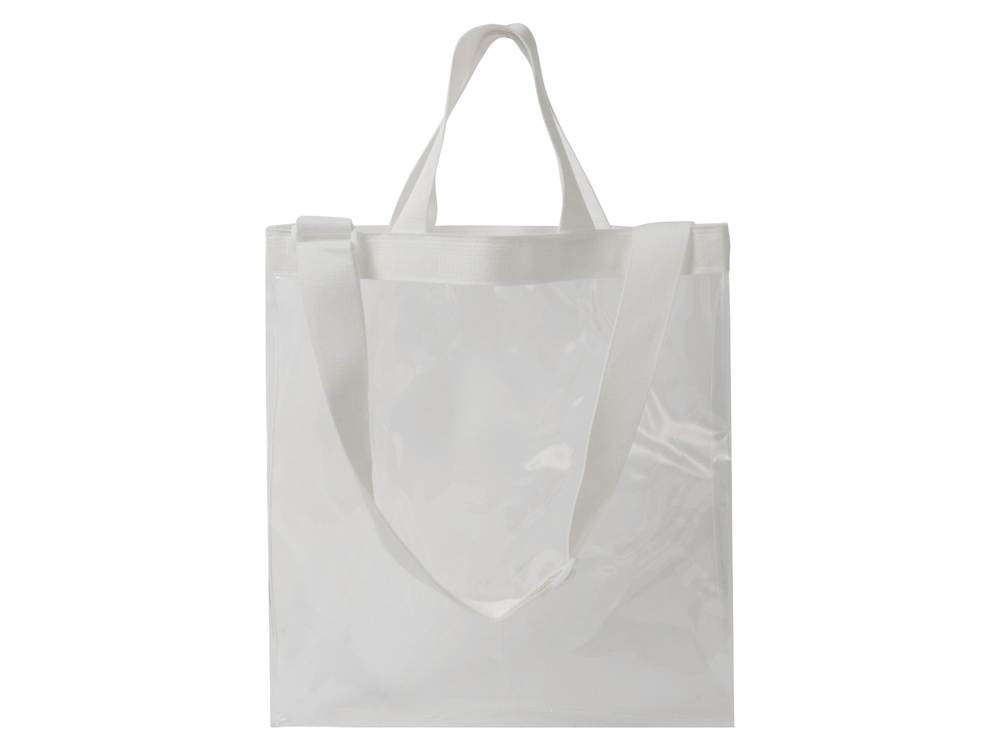 Легкая и вместительная сумка из прозрачного пластика с длинной лямкой из парусины, регулирующейcя по длине, незаменима для шоппинга или путешетсвий. Для большего удобства у сумки есть 2 короткие ручки. Трафаретная печать (1 цвет (цветные изделия)) на данный товар осуществляется бесплатно. Оплачивается только настройка оборудования в размере 8700 рублей на весь тираж.